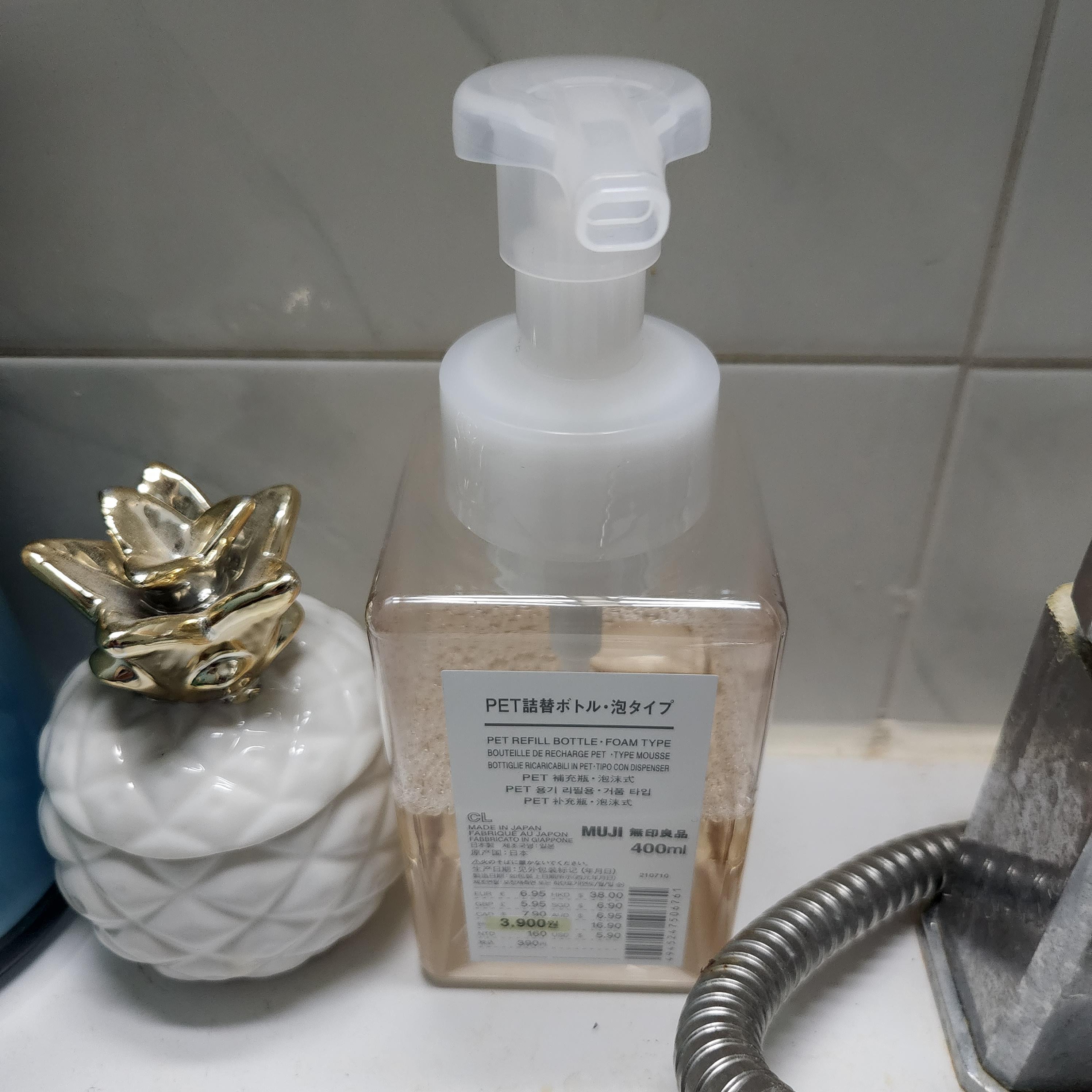 투명 vs 불투명, 400mL vs 200mL 중에 고민하다가 안이 잘 보여서 얼마나 남았는지 알 수 있는 게 좋고 손을 자주 씻는 편이라 리필 자주 하기 귀찮아서 투명&400mL로 골랐다. 가격도 개당 3,900원으로 다이소랑 별 차이가 없어서 거실 화장실, 안방 화장실, 주방용으로 3개를 사기로 했다. 배송비 내기 싫어서 친구랑 상수에서 만나기로 한 날, 무인양품 합정점에 가서 샀다. 왠지 무인양품은 들어가면 포근하고 아늑해서 뭔가 자꾸 쇼핑하고 싶어지는 기분이 든다. 결국 필요한 것만 사서 나오긴 했지만. 군더더기 없고 깔끔한 디자인이라 어디에 놔도 잘 묻어서 마음에 쏙 든다.