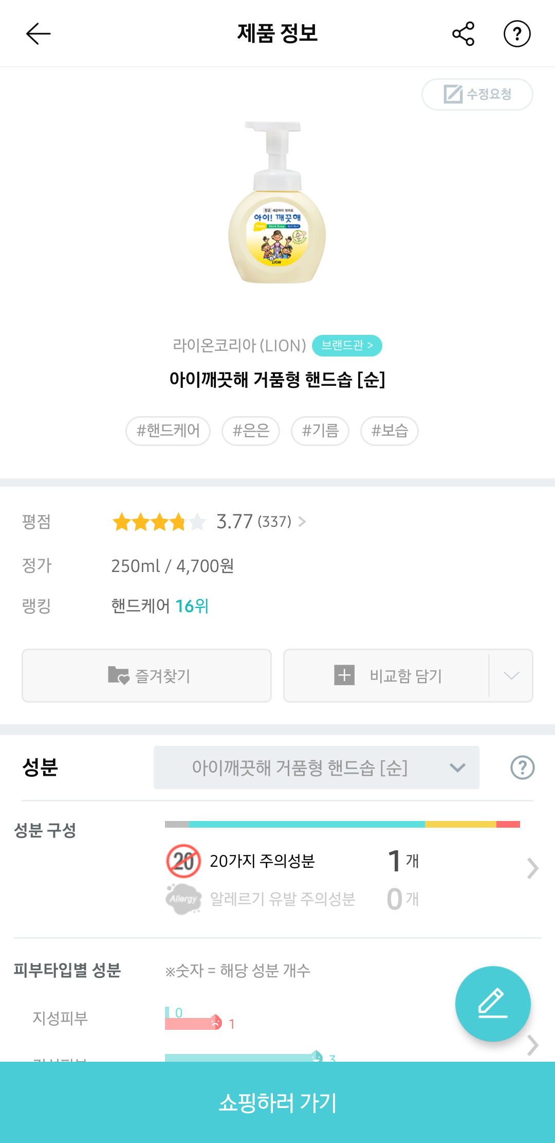 화해에서 검색해보니 제로퍼센트 버블 핸드워시와 달리 20가지 주의 성분이 하나 나오긴 하던데, 전에 사용해봤을 때 크게 트러블은 없었던 거로 기억해서 일단 사용해보려고 한다. 제로퍼센트 혹시 보고 있다면 리필 대용량을 꼭 내주길 바람...